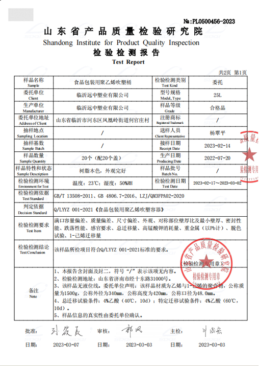 通過全體職工近年的不懈努力,產品質量受到國內外用戶的好評。公司始終堅持“質量贏得天下,塑造供銷橋梁,方便天下客商”的理念。我們將以合適的塑料桶價格和更盡善盡美的服務歡迎各界朋友蒞臨惠顧,期待與您的真誠合作。